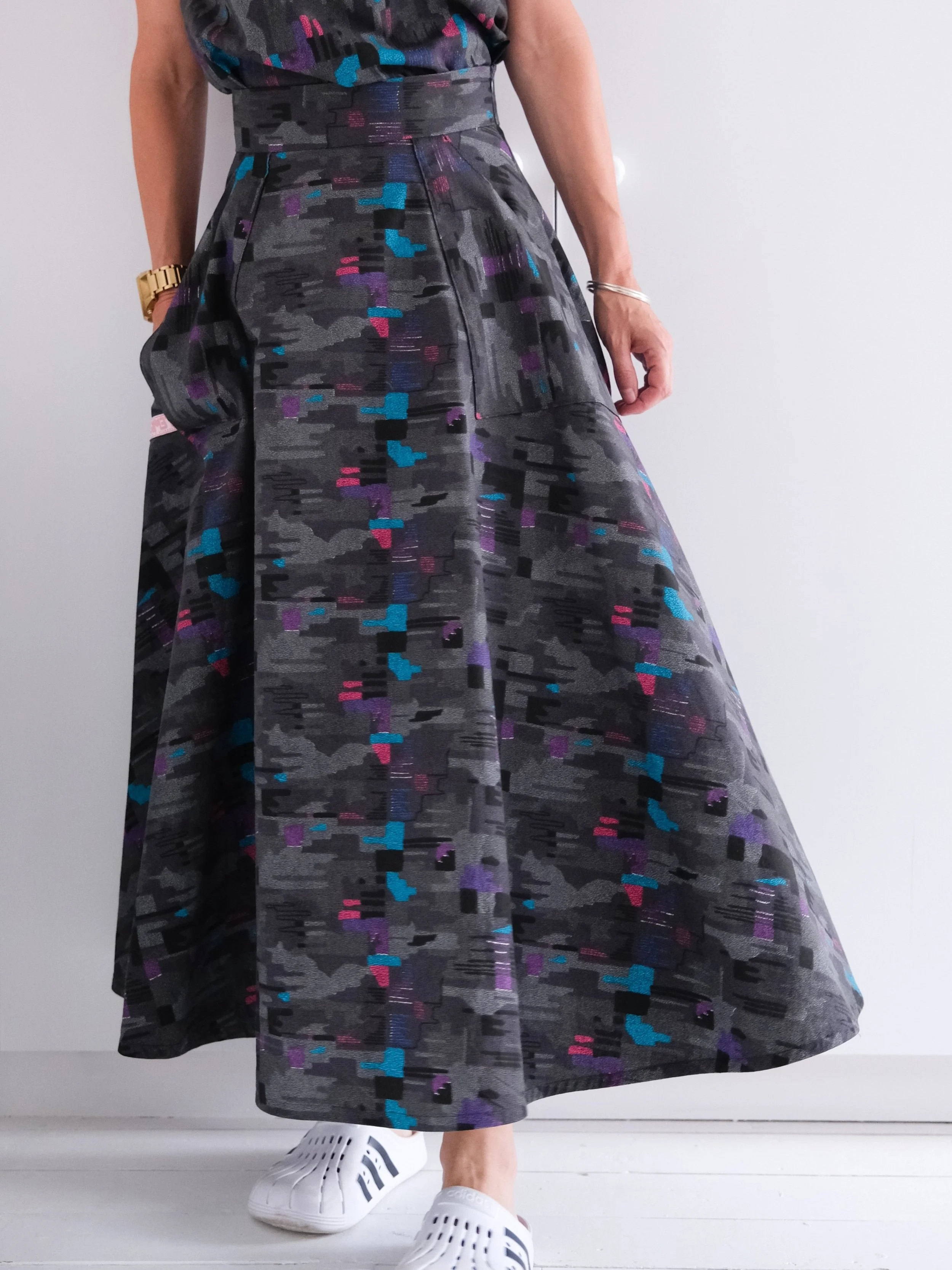 80’s sofa bed? Roller blinds? Duvet covers? This most excellent vintage fabric has got something of that early computer chic about it. Elegant pixels. White noise and ‘digital’, at a time when we thought that only watches could be digital. Elegant pixels.
